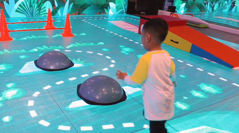 每节课由若干个场景化的游戏组成,每个游戏针对反应力、平衡能力、节奏感、反向定位能力、辨别能力、手眼协调性等方面进行训练,结合沉浸式的场景化认知体系,让孩子们在快乐的游戏过程中得到身心的全面开发。每节课,游戏环节的前后,配合专适用于儿童的健身动作(不使用负重器械)作为热身和拉伸的环节。
